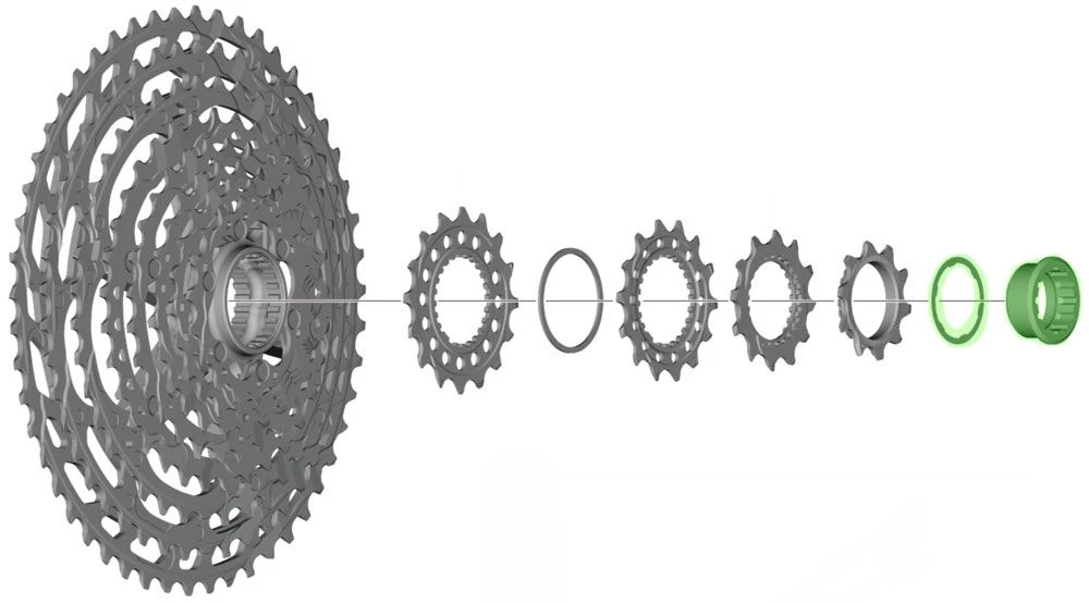Anillo de seguridad de repuesto con espaciador para cassettes Shimano XTR CS-M9100 de 12 velocidades.