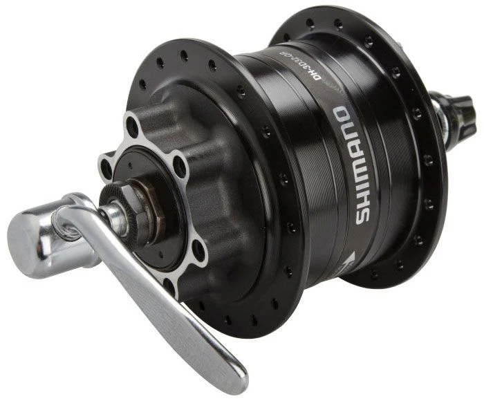 La dinamo de buje DH-3D32-QR de 6 voltios / 3 vatios de Shimano con soporte de disco de 6 orificios tiene una unidad interna de nuevo diseño que reduce el peso y disminuye la resistencia de la dinamo.