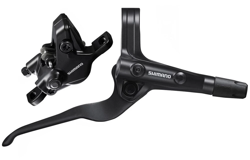 El freno de disco hidráulico de 2 pistones de Shimano con maneta ergonómica BL-MT402 de 3 dedos y pinza BR-MT410 para un rendimiento de frenado equilibrado, establece el estándar de los sistemas de frenado de rendimiento asequible.