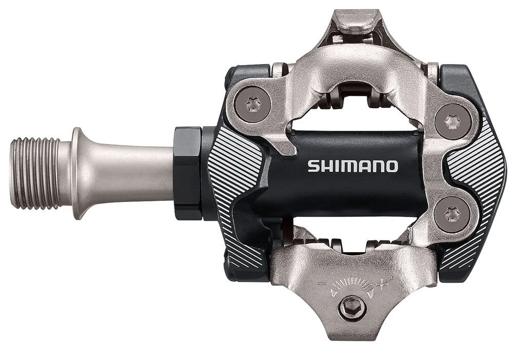 Los pedales XT PD-M8100 XC SPD de Shimano mejoran la estabilidad del ciclista con superficies de contacto más amplias de borde a borde.