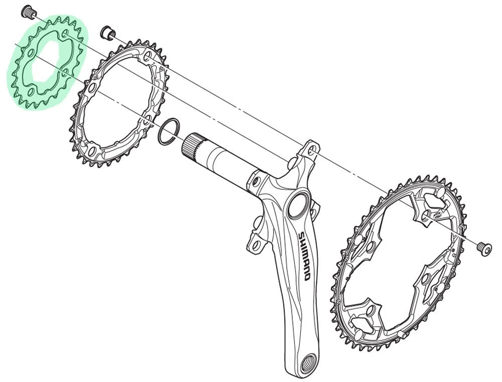 - 1 x Plato Shimano DEORE para FC-M590/591/532 22 dientes