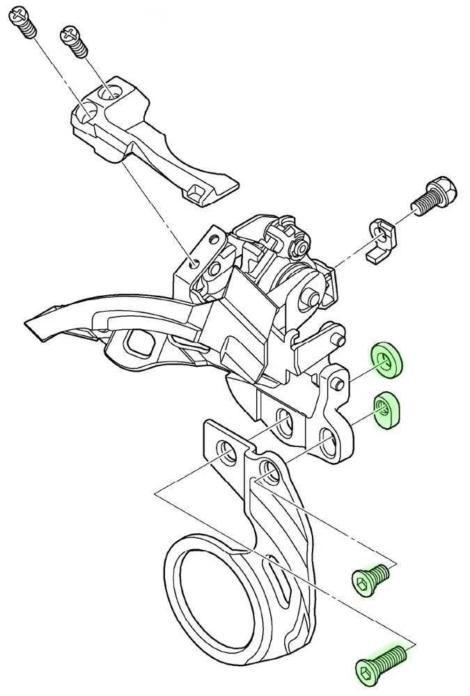 Tornillos de fijación Shimano para caja de pedalier tipo E (FD-M980-E, FD-M780-E, FD-M785-E2, FD-M770-10E).