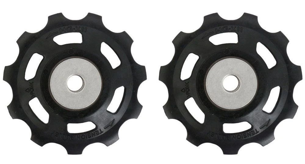 Juego de poleas tensoras de alta gama para bicicletas de carretera Dyna-Sys11 para Ultegra de 11 velocidades. Los rodamientos de precisión sellados en ambos rodillos garantizan un accionamiento suave y de baja fricción.
